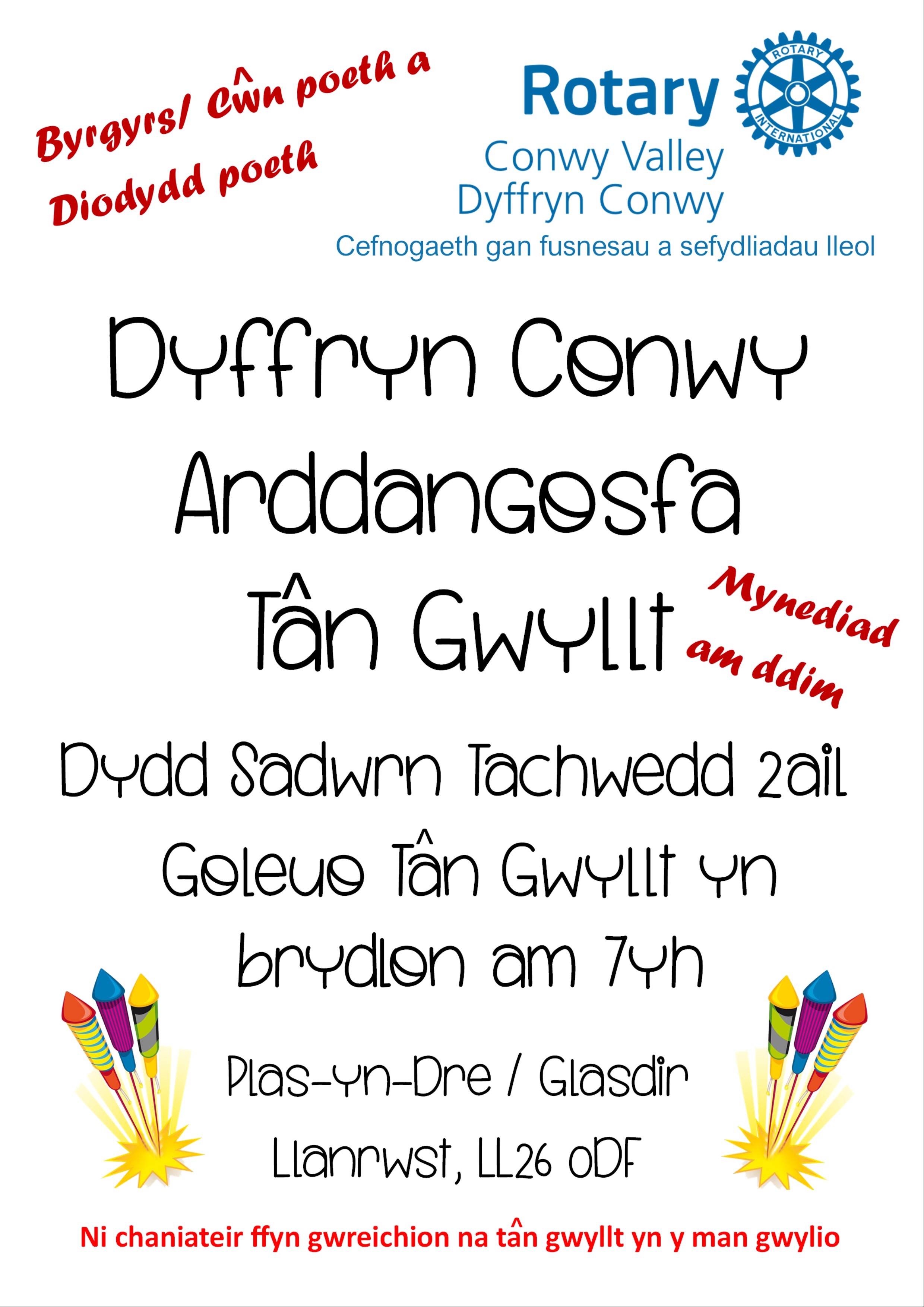 More details about the fireworks will be published on our Facebook page at https://www.facebook.com/LlanrwstFireworks/ as they become available.